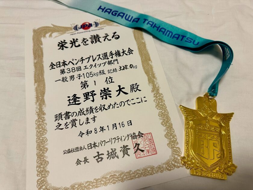 「全日本ベンチプレス選手権大会」に逢野が出場し、優勝🥇328kgの日本新記録を樹立しました。